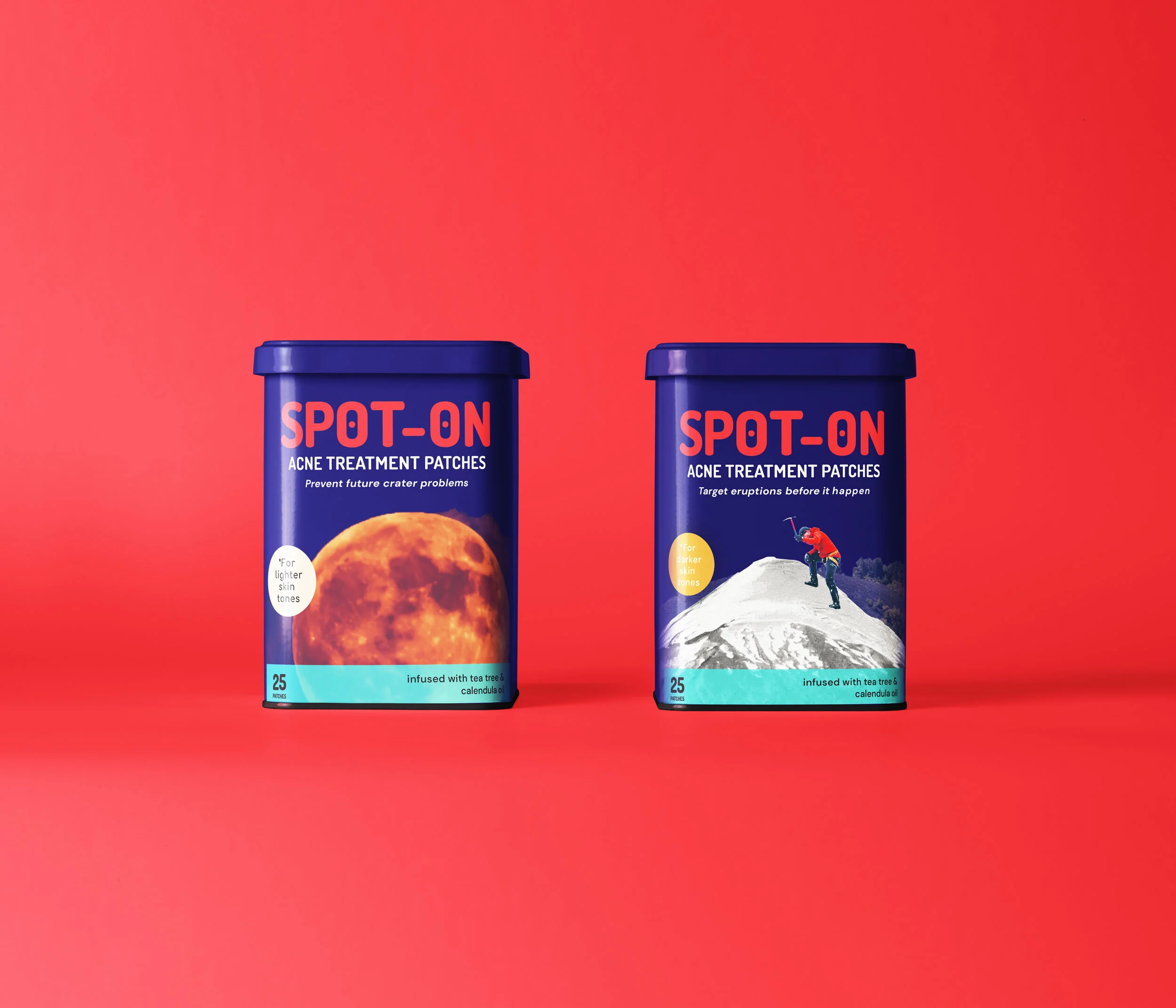 Solution: Use collage as a design style to make the product fun and humorous. The retro tin packaging builds on the fun aesthetic while being reusable and recyclable.
