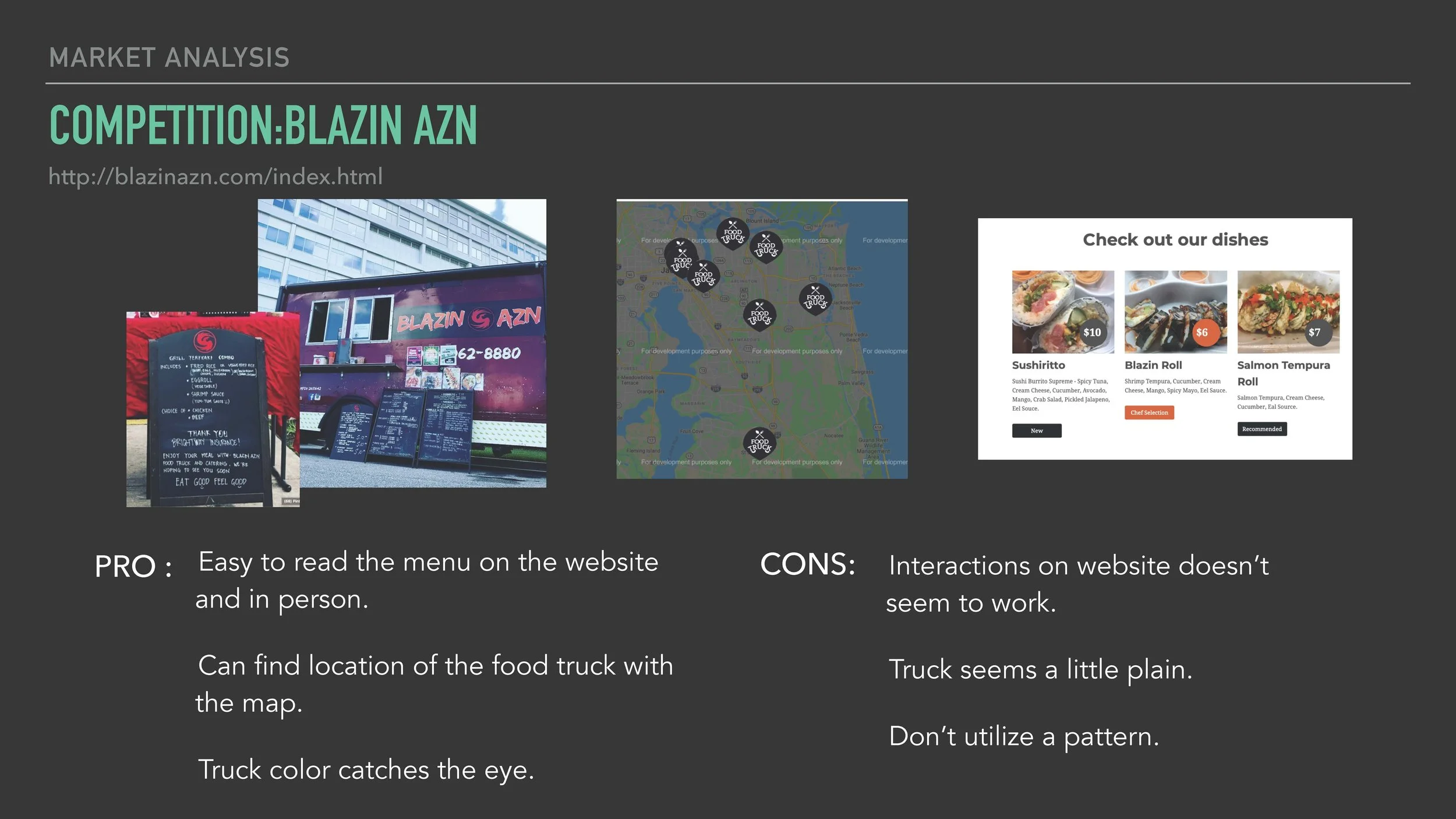 I conducted research to explore the food truck arena in Jacksonville, analyzing the variety of offerings and competition in the market and focusing on their online presence.