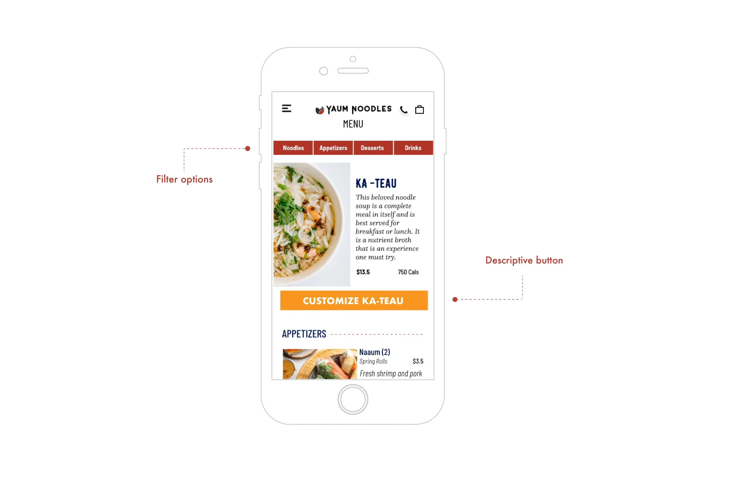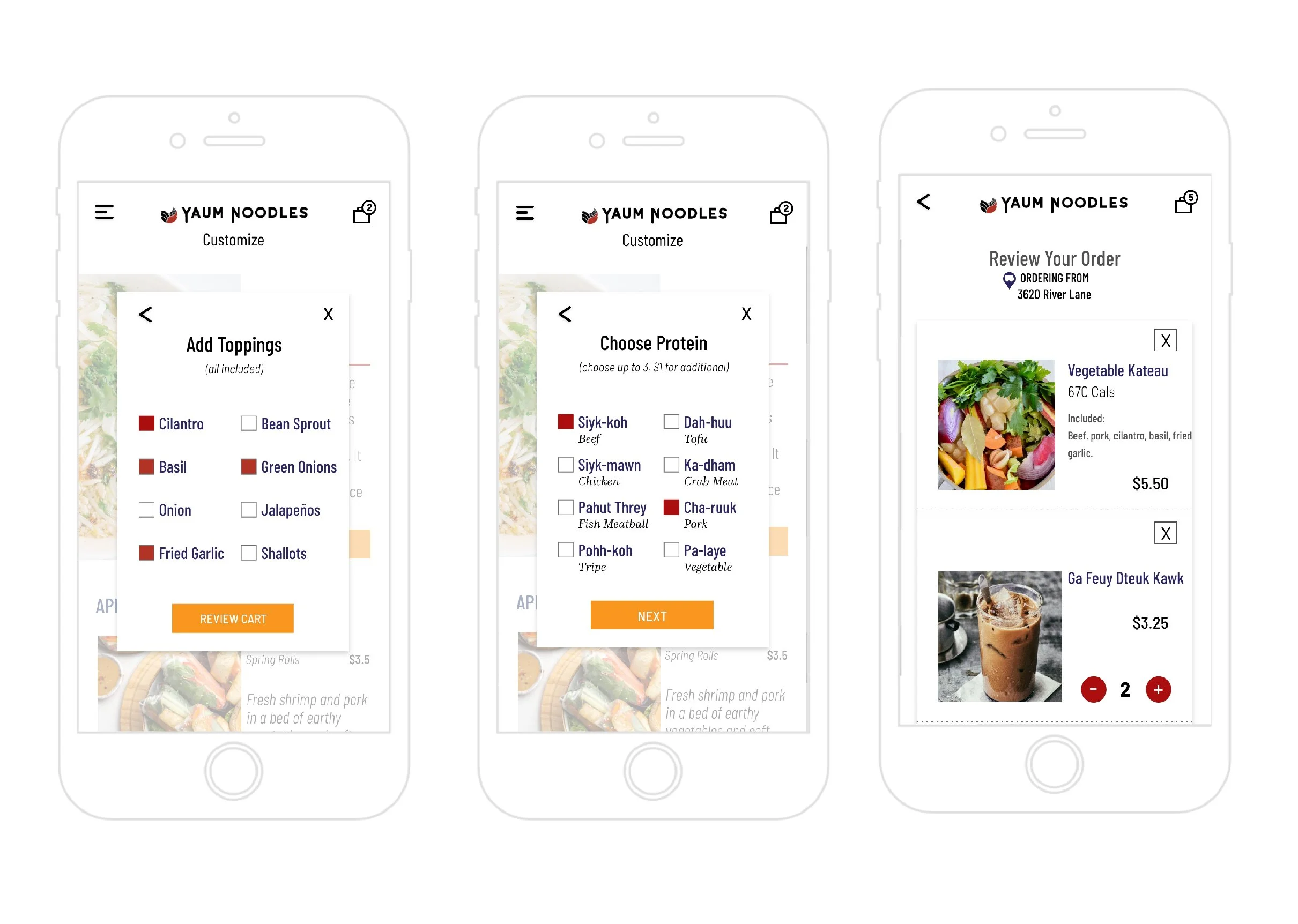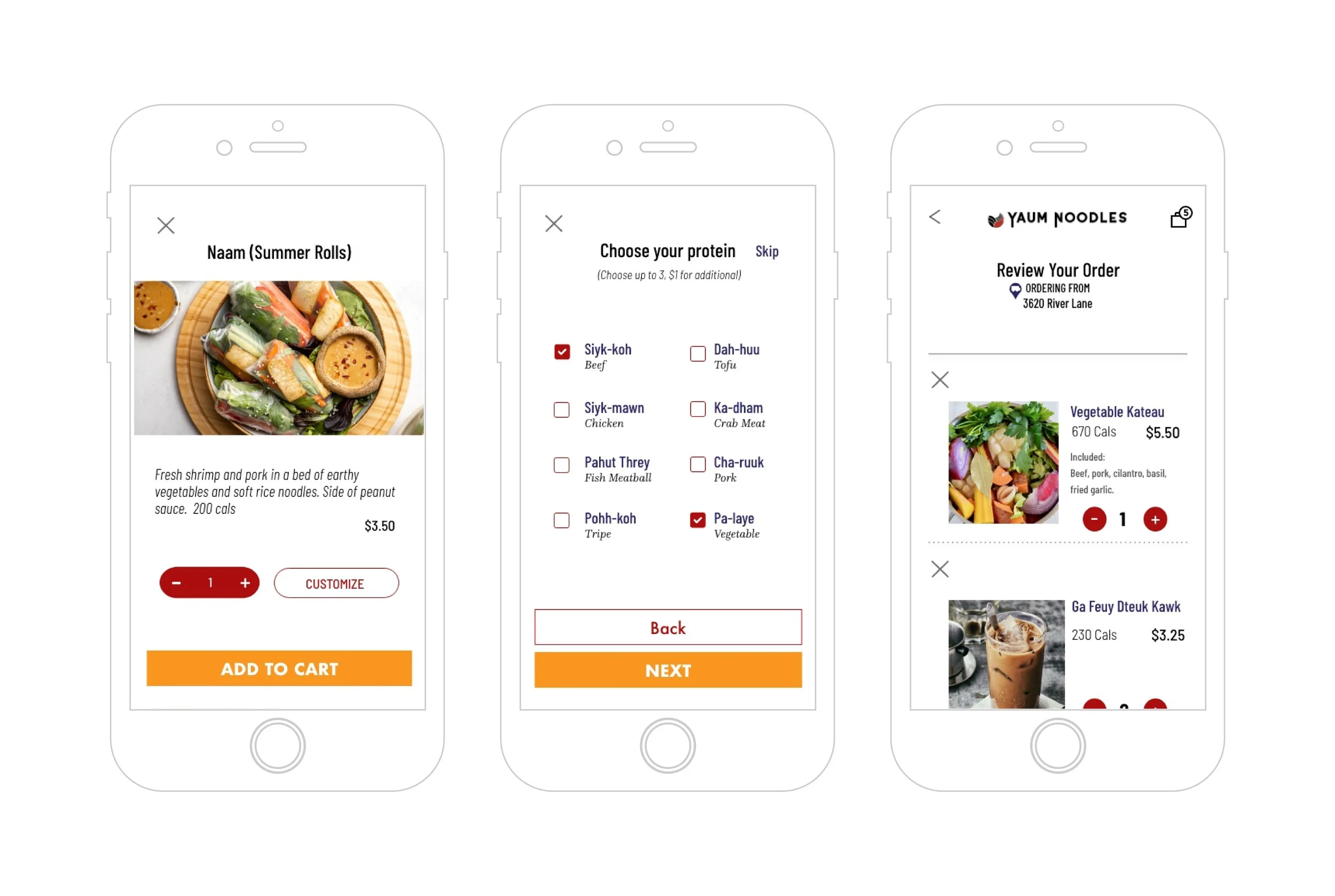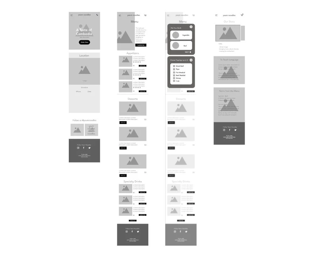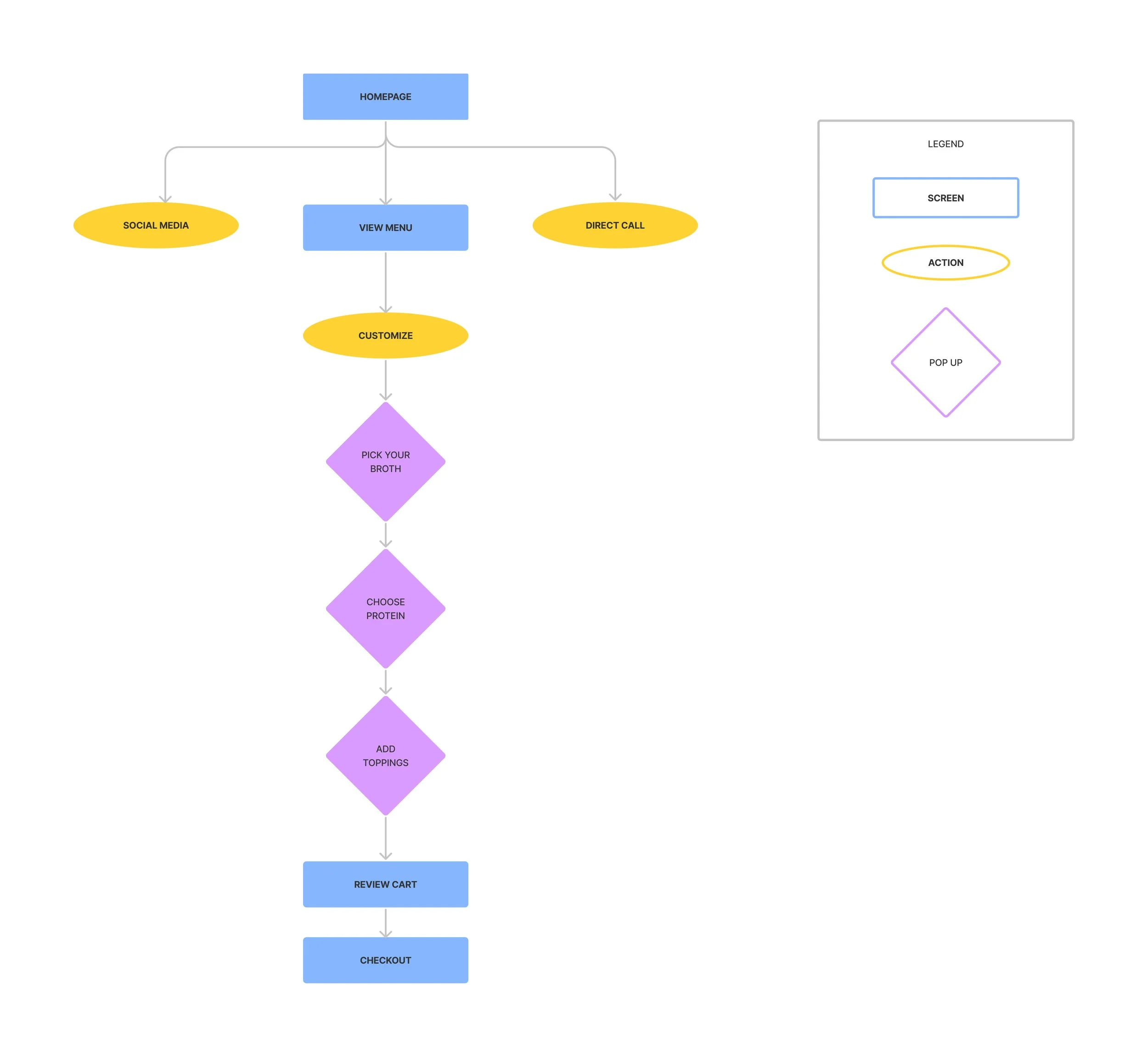 That food truck offered a unique experience by allowing customers to customize their noodle bowls. I delved into the flow and information architecture, mapping out the happy path users would take to navigate through the customization process seamlessly.