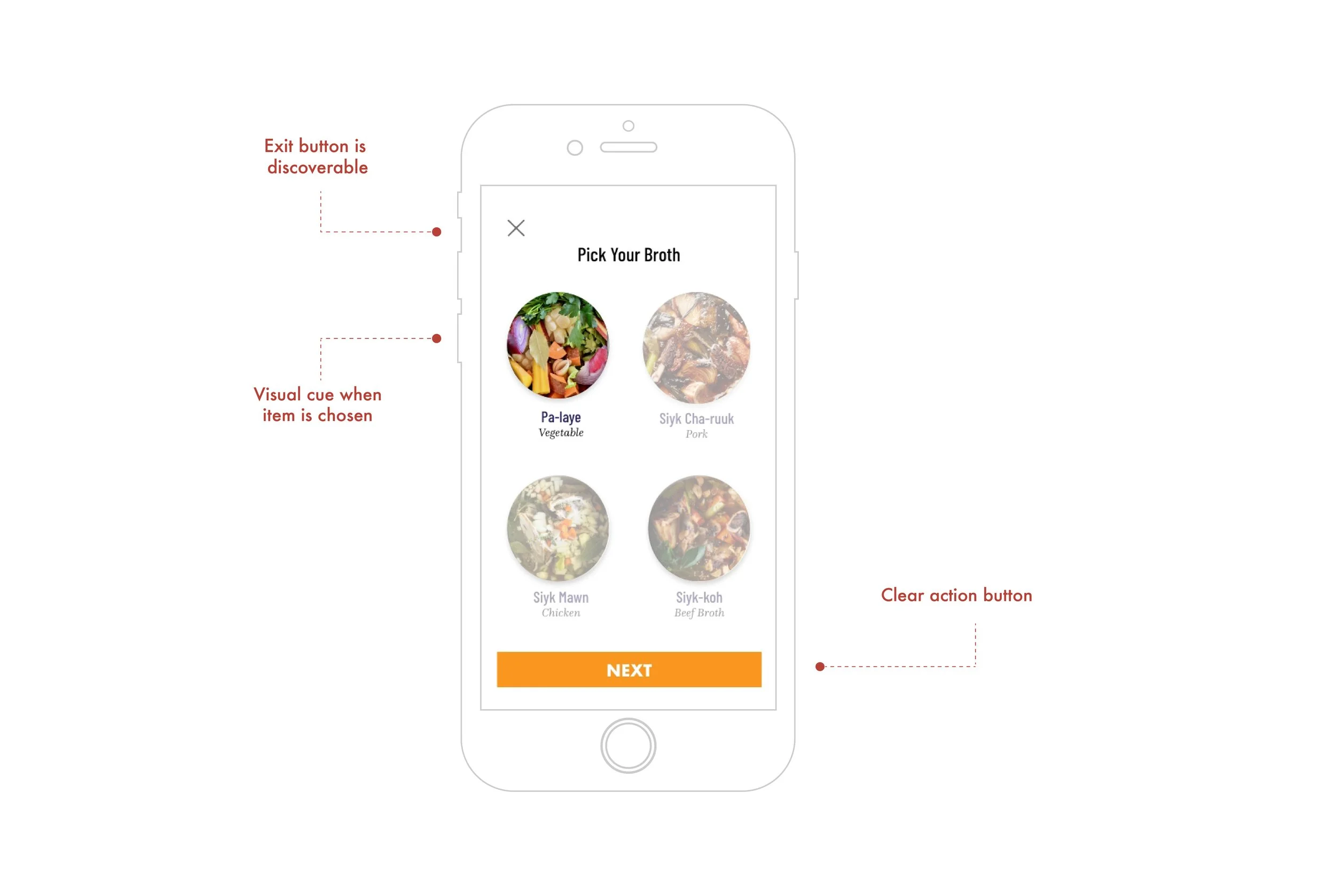 Problem: Users found it confusing when selecting a broth, as there was no clear indication that their choice had been registered.